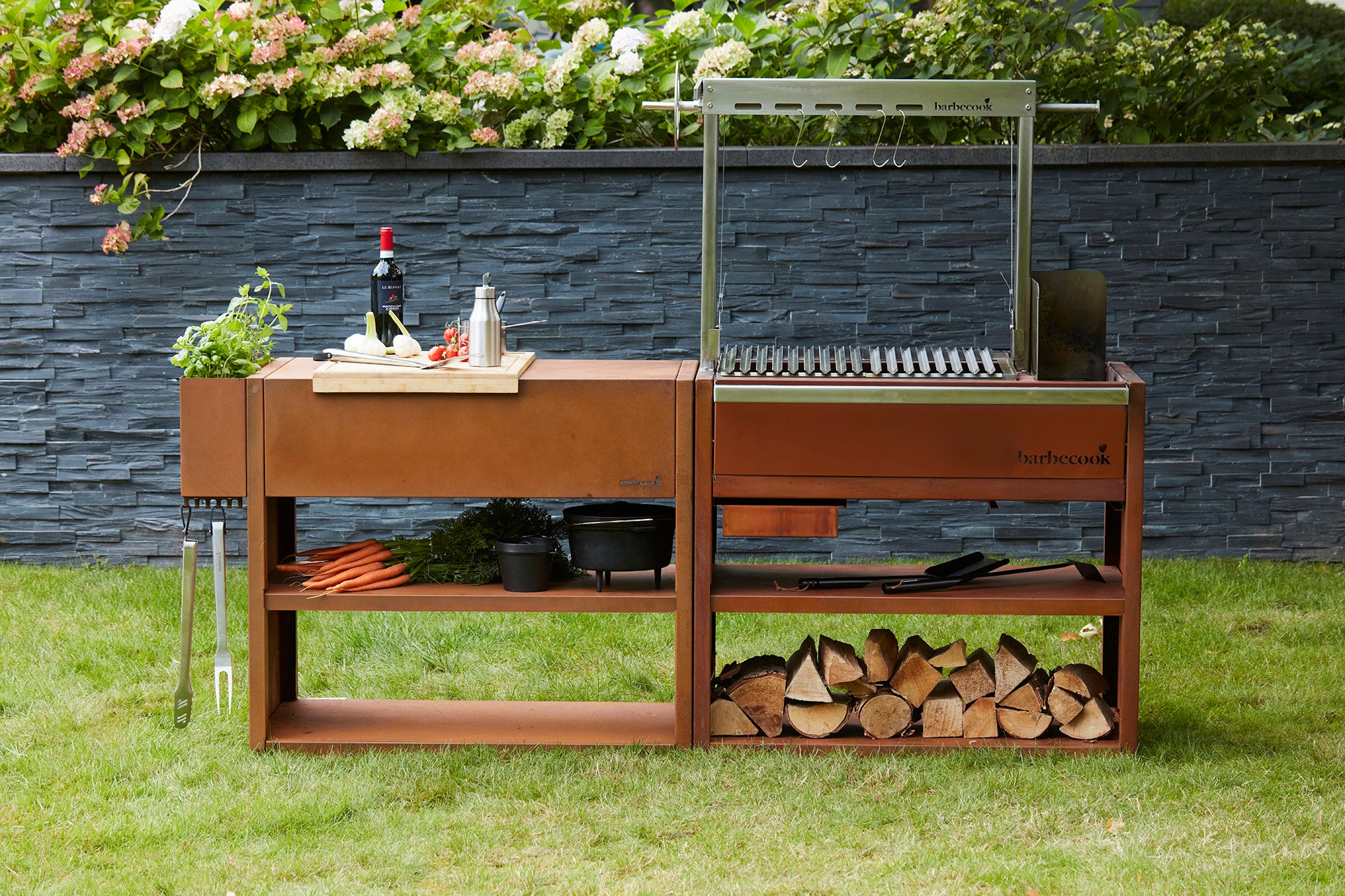 Take outdoor cooking to the next level with Pedro, the robust extension of Nestor. Designed for anyone who loves cooking with fire, character, and full control. The adjustable parrilla grill and brasero system let you play with temperature and flavor. Grill, smoke, or stew directly over the fire exactly the way you want it.