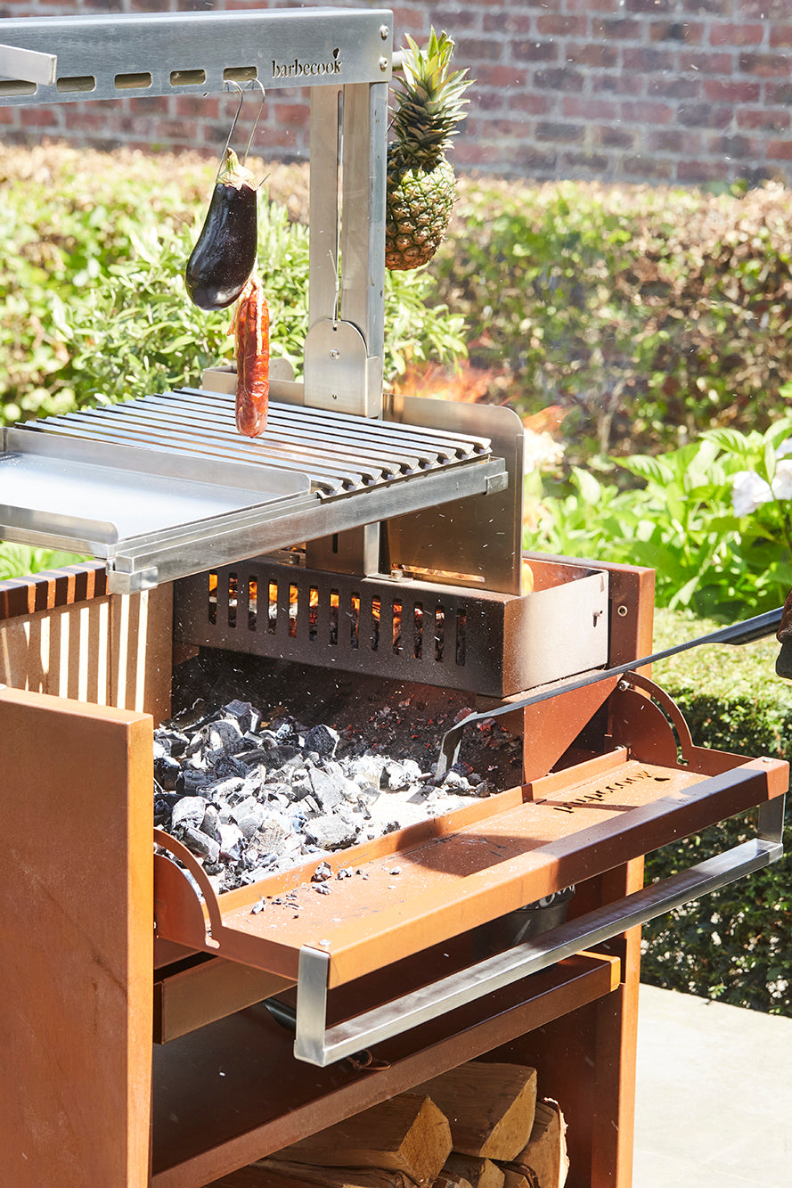Pedro is inspired by the authentic Argentine asado tradition and designed for lovers of real barbecue flavors. He works with both wood and charcoal and is perfect for slow cooking, smoking, and grilling with character. Thanks to the adjustable parrilla grill, you always have complete control over the temperature so every dish comes out exactly as you want it. With Pedro, you bring a piece of the vibrant Argentine barbecue culture to your own backyard, a trend that inspires barbecue fans around the world.